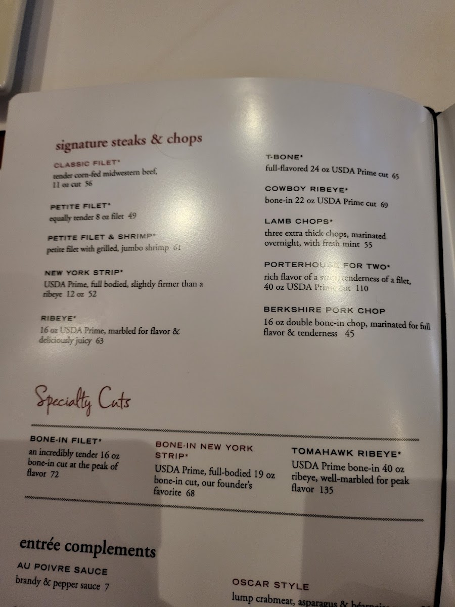 “ I recently dined at Ruth's Chris Steak House, and it was an exceptional experience. The server was incredibly friendly and attentive, making sure we had everything we needed throughout the meal. The steaks were perfectly cooked, tender, and full of flavor—truly some of the best I've ever had. To top it all off, the cheesecake was divine, with a rich and creamy texture that was simply unforgettable. Highly recommend! ”